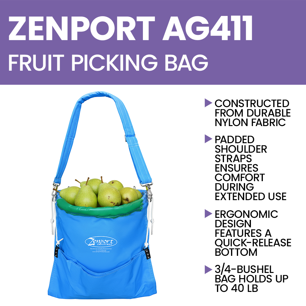 The Zenport AG411 Fruit Picking Bag is an essential tool for orchard workers and backyard growers alike. This versatile 3/4 bushel sling bag is perfect for harvesting apples, pears, citrus, and other tree crops with ease and efficiency. Designed to protect delicate fruits, the soft-shell construction ensures minimal bruising during collection while providing optimal durability for heavy use.