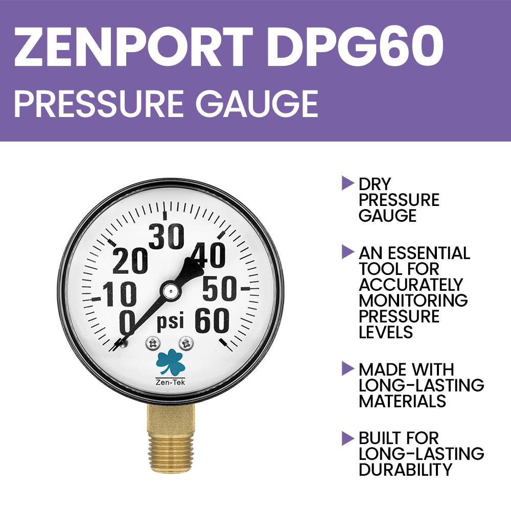 Whether you're regulating pressure for agricultural irrigation systems or ensuring safe operation of pneumatic tools, the Zenport DPG60 delivers reliable performance you can count on. Compact, lightweight, and easy to install, this dry air pressure gauge is a must-have for maintaining efficiency and safety in any pressure-dependent application.