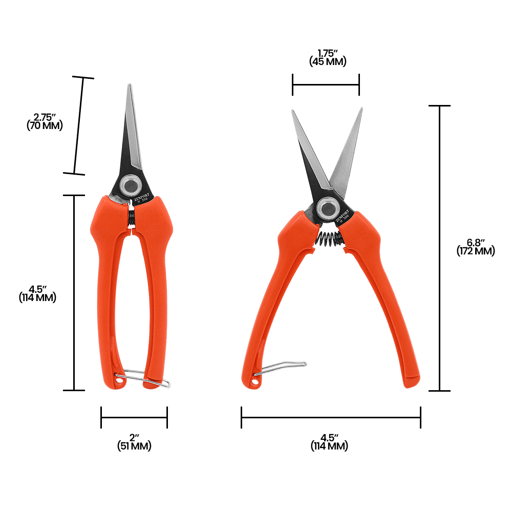 The Zenport H306C Euro Style Harvest Shear is an essential tool for gardeners, viticulturists, and horticulturists seeking precision and efficiency. Equipped with durable carbon-treated steel curved blades, this shear is specially designed for high-volume harvesting tasks, such as grape picking and pruning delicate fruit stems. The sharp, needle-nose blades enable deep, accurate cuts without harming surrounding fruits or foliage, making it ideal for maintaining plant health during harvest.