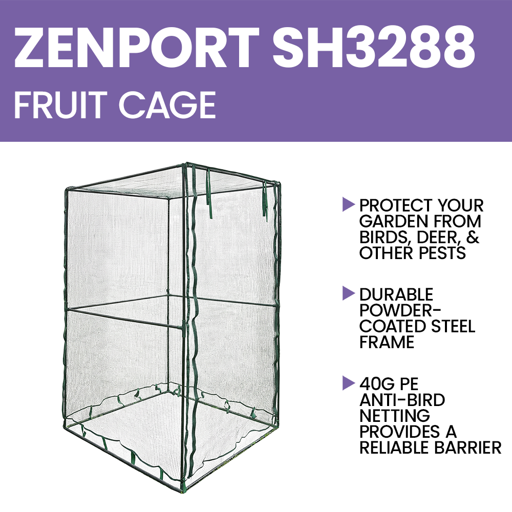 The Zenport SH3288 Fruit Cage, Anti-Bird Netting is the ideal solution to protect your garden's fruits, vegetables, and plants from birds, deer, and other garden pests. This sturdy and practical cage offers a secure enclosure, allowing your plants to thrive without interference from wildlife. Keep your garden productive and pest-free with this easy-to-use and highly durable protective system.
