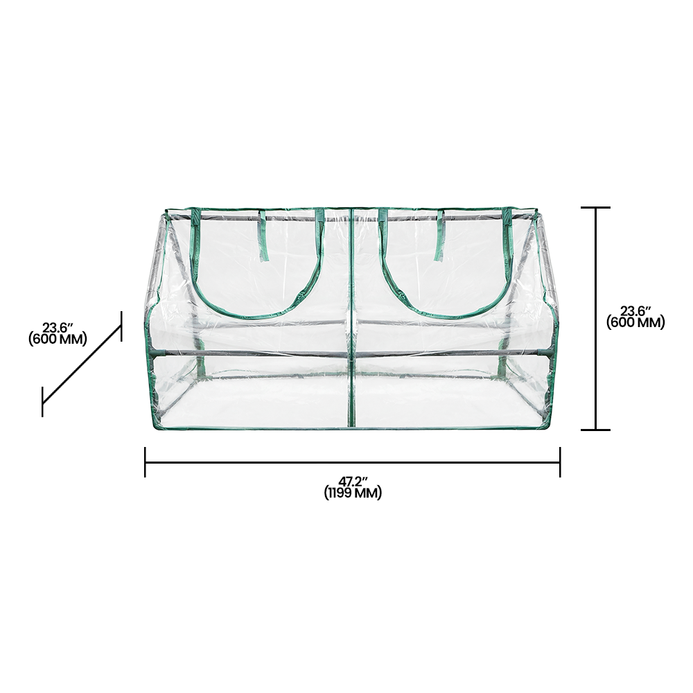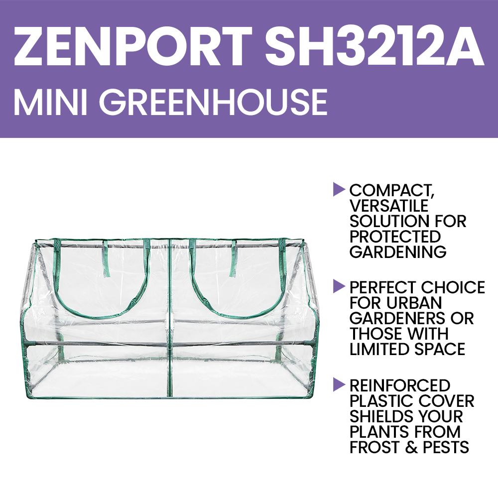 The Zenport SH3212A Mini Garden Cold Frame Greenhouse Cloche is a compact, versatile solution for protected gardening. Measuring approximately 47.2 x 23.6 x 23.6 inches, this greenhouse offers an economical way to jump-start seed propagation, grow plants, and display your garden’s beauty. Its small footprint makes it ideal for patios, balconies, or any sheltered area, making it a perfect choice for urban gardeners or those with limited space. The durable, waterproof transparent cover creates optimal growing conditions by providing warmth and insulation while allowing sunlight, air, and moisture to penetrate.