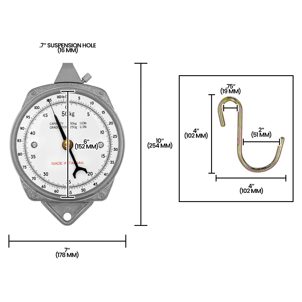 The scale includes a sturdy plated top loop and bottom hook for secure hanging, making it suitable for use in markets, kitchens, and warehouses. Built for reliability and convenience, this scale is a must-have for anyone seeking dependable weighing performance.