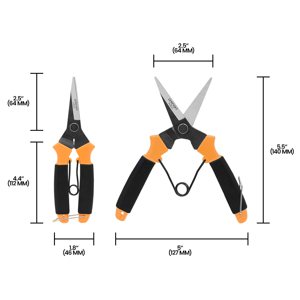 With a compact 7-inch overall length and 2-inch blades, the Zenport H303 is perfect for precise, close-quarters tasks. Whether you're harvesting in a field or pruning in your backyard, these shears deliver reliable performance with minimal strain, making them an essential tool for professionals and hobbyists alike.