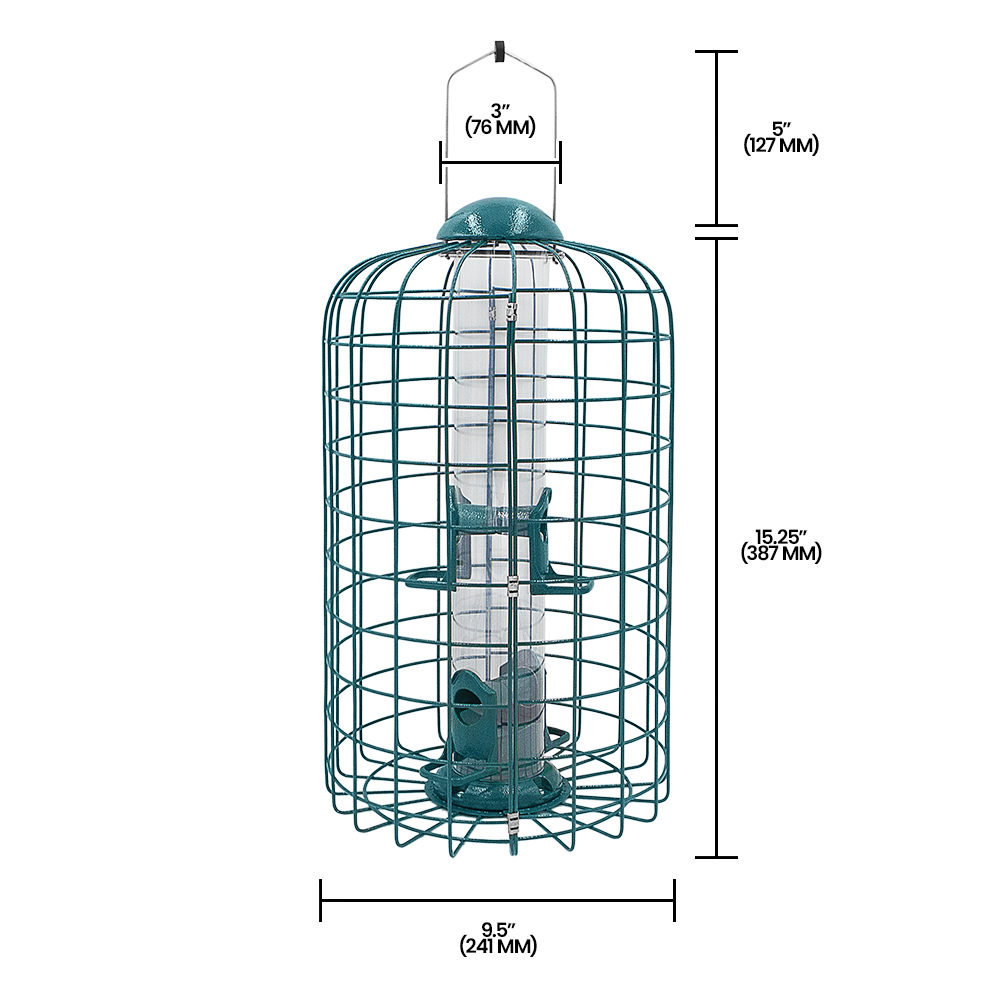 This squirrel-proof feeder has a generous capacity, holding up to 1 quart (or 1.3 lbs) of birdseed, so you can go longer between refills. It's ideal for feeding a variety of seeds, from sunflower seeds to mixed birdseed blends, making it versatile for attracting finches, chickadees, and other small birds. The thoughtfully spaced cage design not only keeps squirrels out but also minimizes waste, ensuring that your feathered visitors can enjoy their meals without interference.